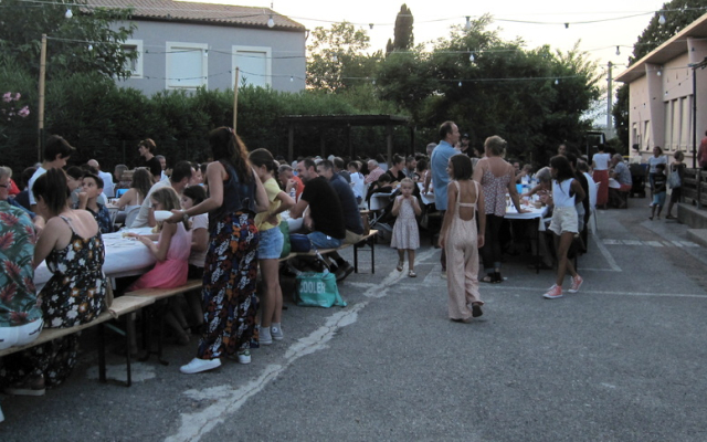 Après un après-midi chaud et calme, les « hostilités » ont repris à 19h00 dans l’enceinte de l’école pour le deuxième round : LE REPAS REPUBLICAIN.